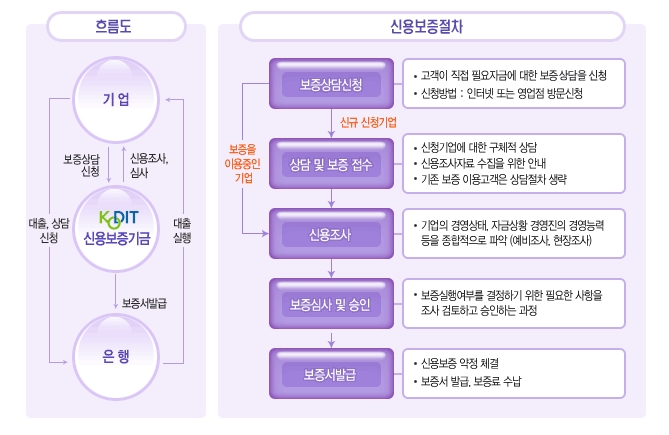 | 보증대상기업 | · 개인기업 : 영리를 목적으로 사업을 영위하는 기업 · 법인기업 : 영리를 목적으로 사업을 영위하는 법인 · 기업단체 : 중소기업 협동조합법에 의한 중소기업협동조합 ※ 대기업 제한, 상장기업은 특정자금에 한하여 제한적 허용 |